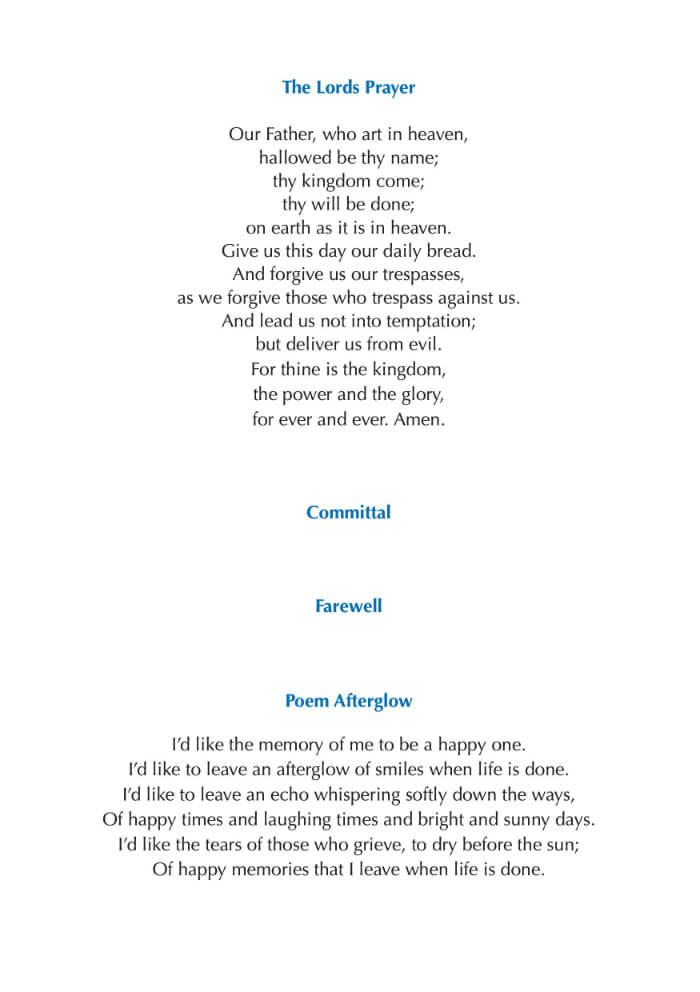 Modern funeral order of service design