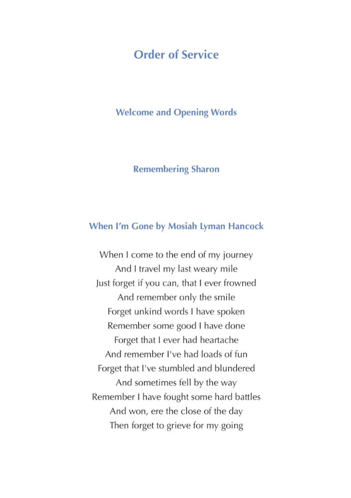 Modern funeral order of service design