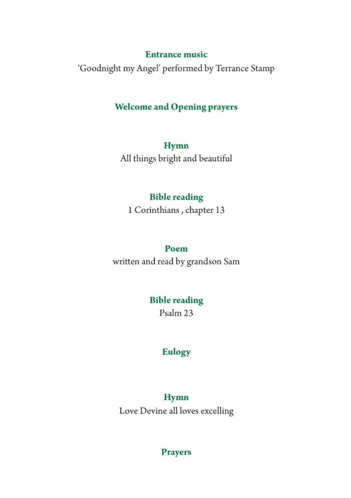Floral funeral order of service