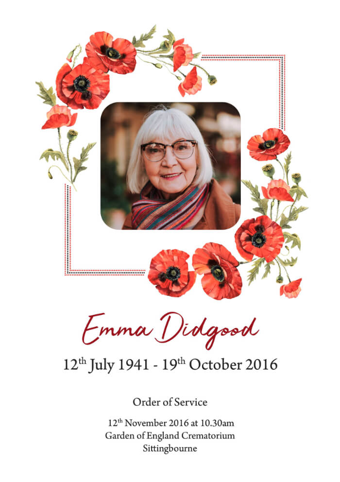 Combining natural colours with elegance, our floral range of funeral order of service designs would be suitable for someone who loved their garden and the outdoors. Lillies, poppies and roses feature heavily on these timeless designs.