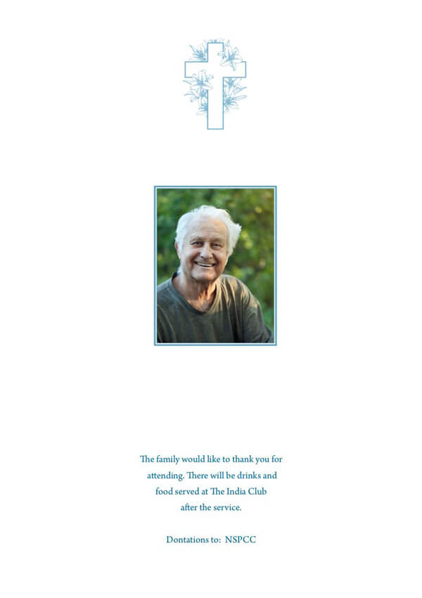 Our classic funeral order of service design are more traditional and reserved than the other ranges. Religious images featured on those classic designs can be changed or removed to suit your requirements.