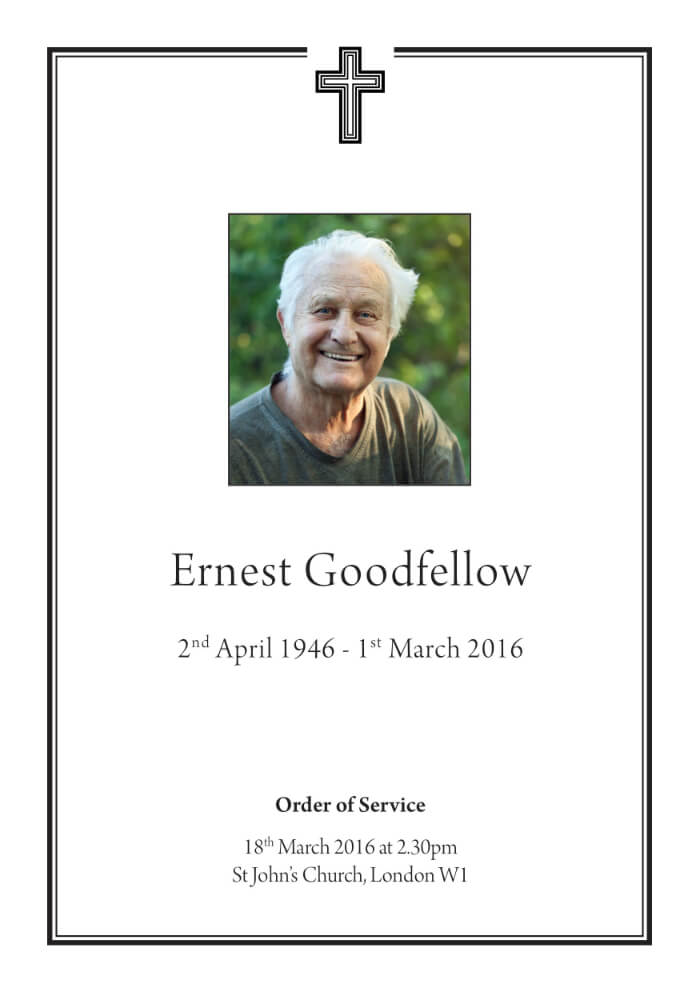 Our classic funeral order of service design are more traditional and reserved than the other ranges. Religious images featured on those classic designs can be changed or removed to suit your requirements.