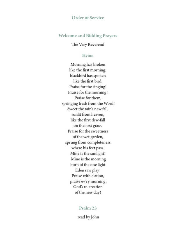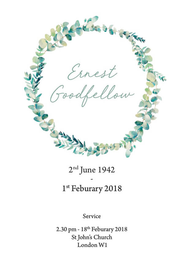 Floral funeral order of service